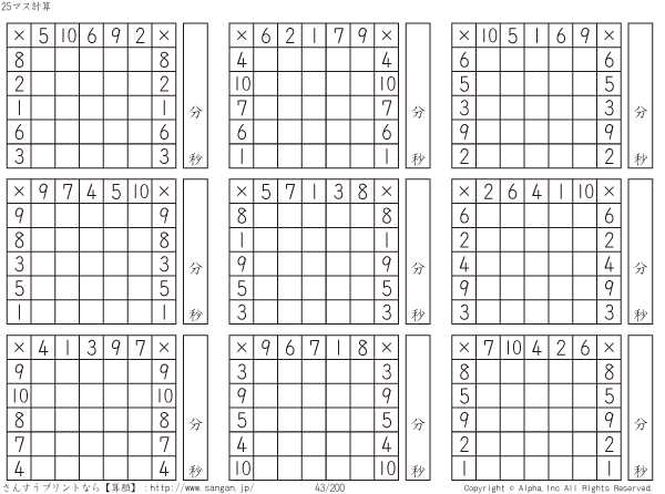 25ます掛け算(5マス×5マス) [問題]043/200