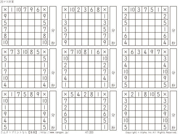 25ます掛け算(5マス×5マス) [問題]047/200