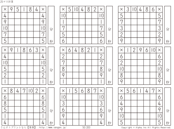 25ます掛け算(5マス×5マス)の問題解答ガイド