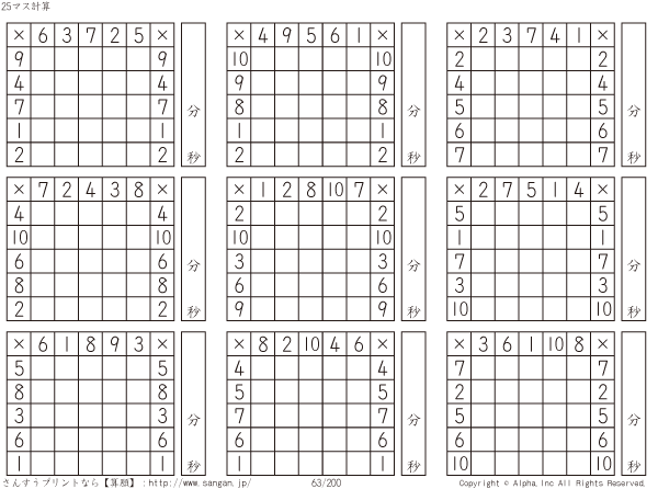 25ます掛け算(5マス×5マス) [問題]063/200