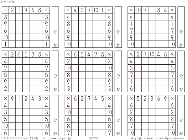 25ます掛け算(5マス×5マス) [問題]069/200