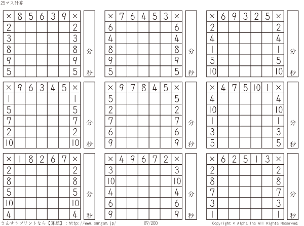 25ます掛け算(5マス×5マス) [問題]087/200