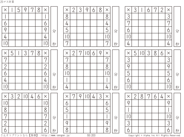25ます掛け算(5マス×5マス) [問題]088/200