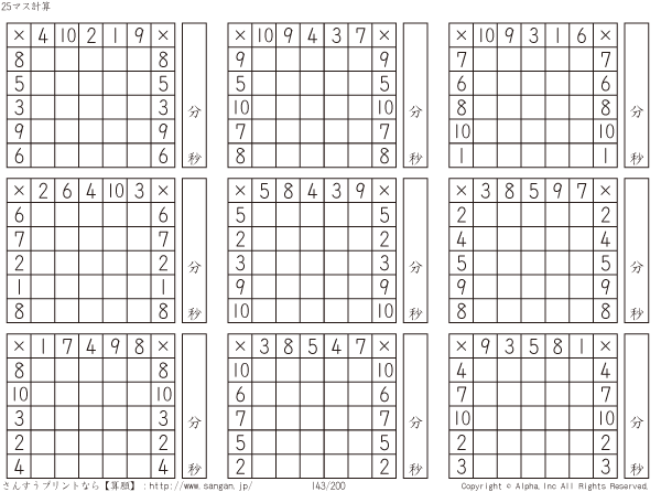 25ます掛け算(5マス×5マス) [問題]143/200
