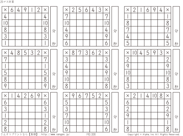 25ます掛け算(5マス×5マス) [問題]192/200