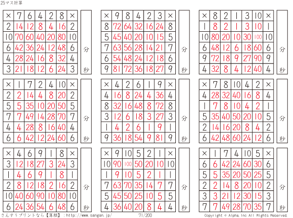 25ます掛け算(5マス×5マス) [解答]071/200