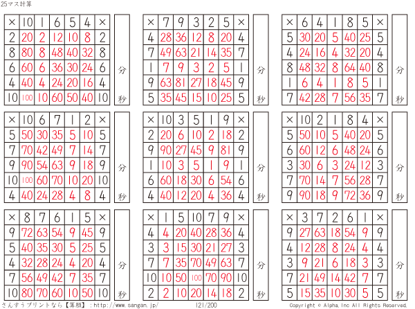 25ます掛け算(5マス×5マス)の問題解答ガイド