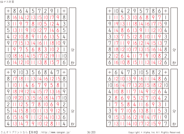 64ます足し算(8マス×8マス) [解答]036/200