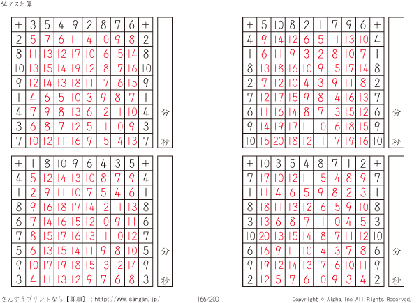 64ます足し算(8マス×8マス) [解答]166/200