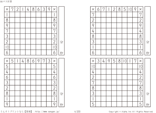 64ます掛け算(8マス×8マス) [問題]004/200