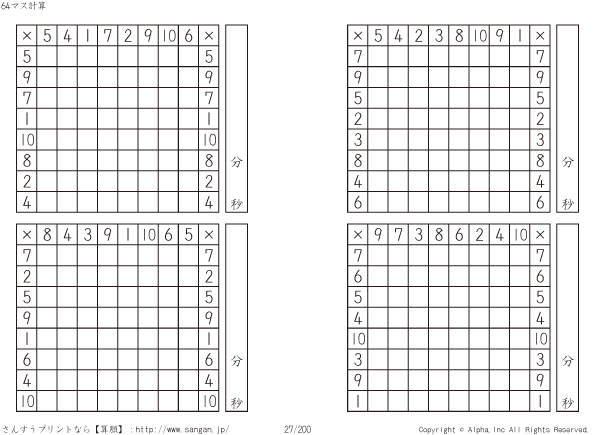 64ます掛け算(8マス×8マス) [問題]027/200