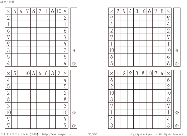 64ます掛け算(8マス×8マス) [問題]073/200