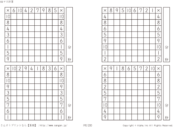 64ます掛け算(8マス×8マス) [問題]190/200