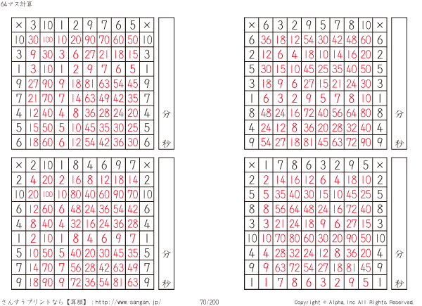 64ます掛け算(8マス×8マス) [解答]070/200