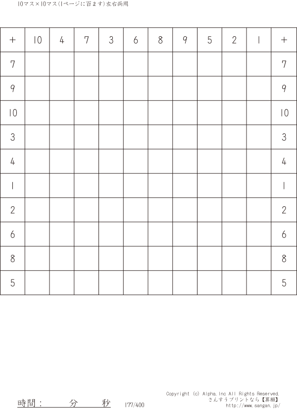 10×10ます足し算(100マス)-左右両用- [問題]177/400