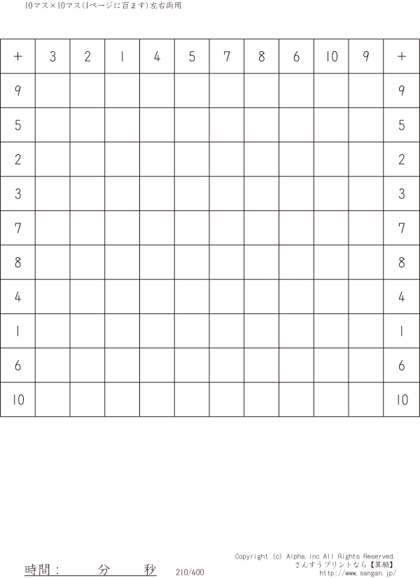 10×10ます足し算(100マス)-左右両用- [問題]210/400