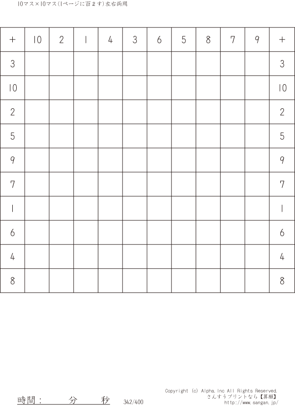 10×10ます足し算(100マス)-左右両用- [問題]342/400