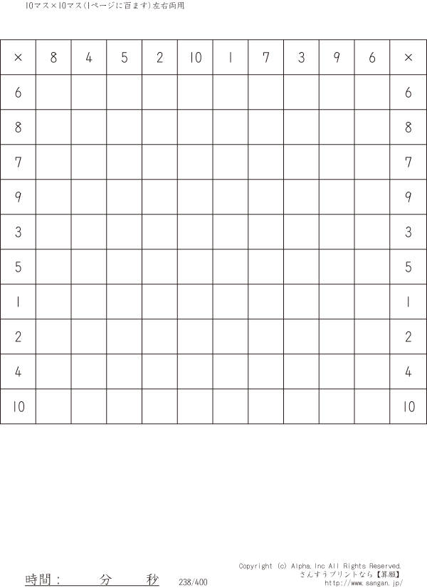 10×10ます掛け算(100マス)-左右両用- [問題]238/400