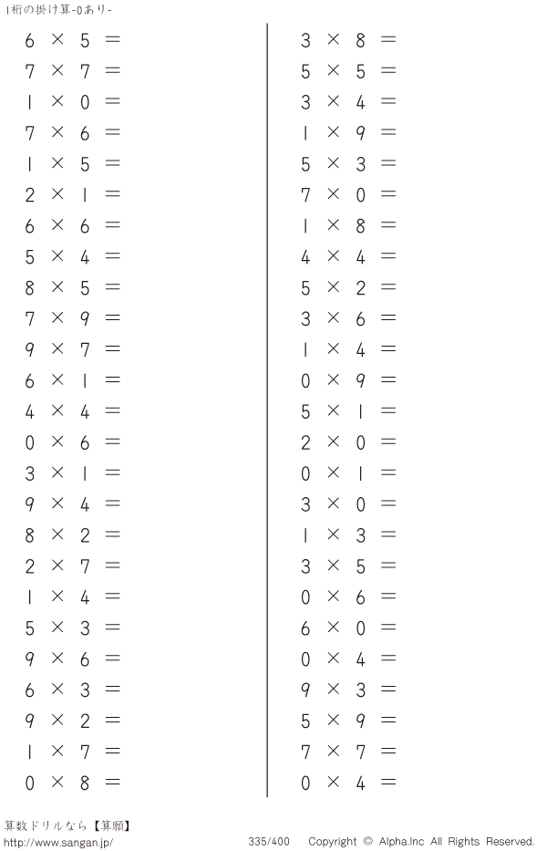 1桁の掛け算(0あり) [問題]335/400
