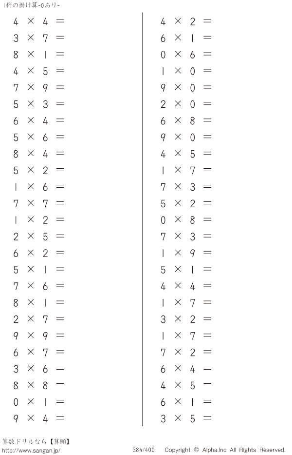 1桁の掛け算(0あり) [問題]384/400