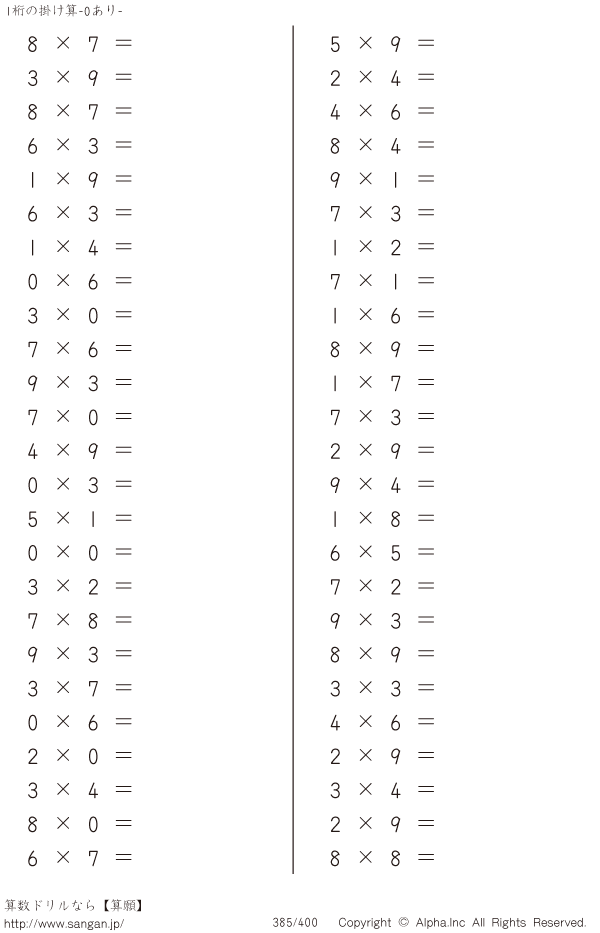 1桁の掛け算(0あり) [問題]385/400