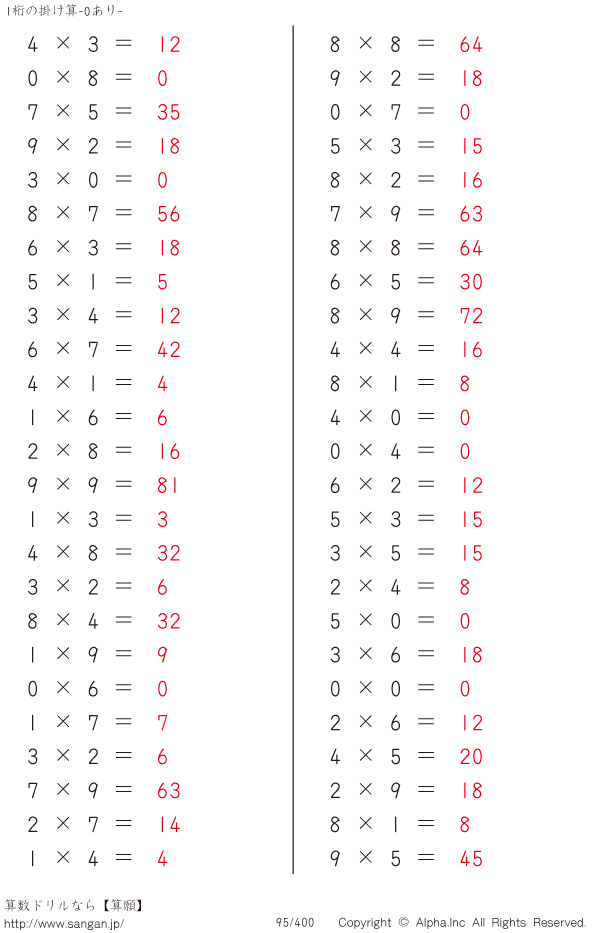 1桁の掛け算(0あり) [解答]095/400