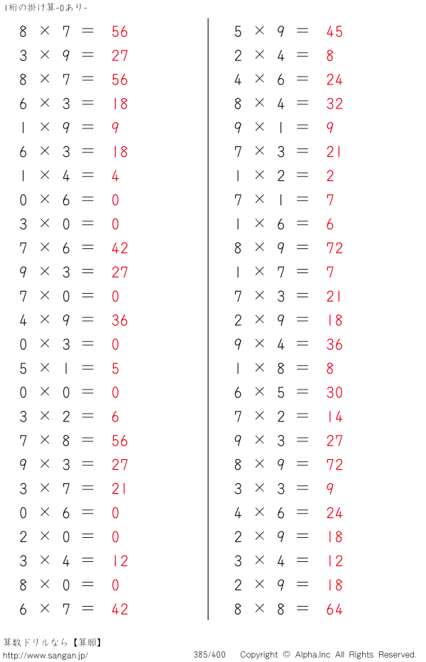 1桁の掛け算(0あり) [解答]385/400