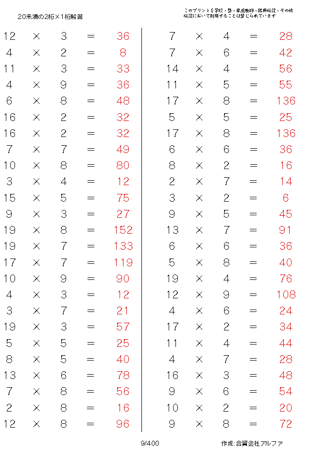20未満の2桁×1桁 [解答]009/030