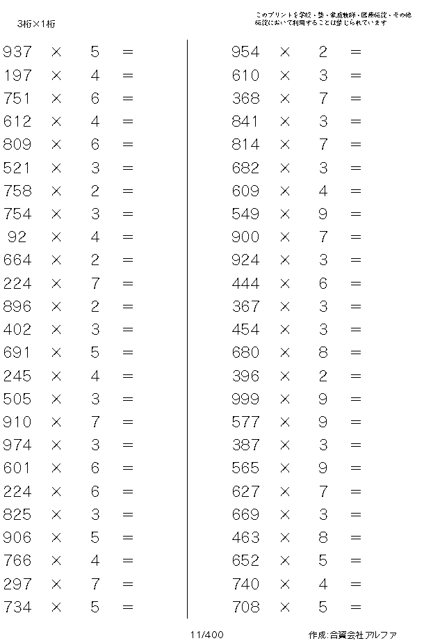 3桁×1桁 [問題]011/030