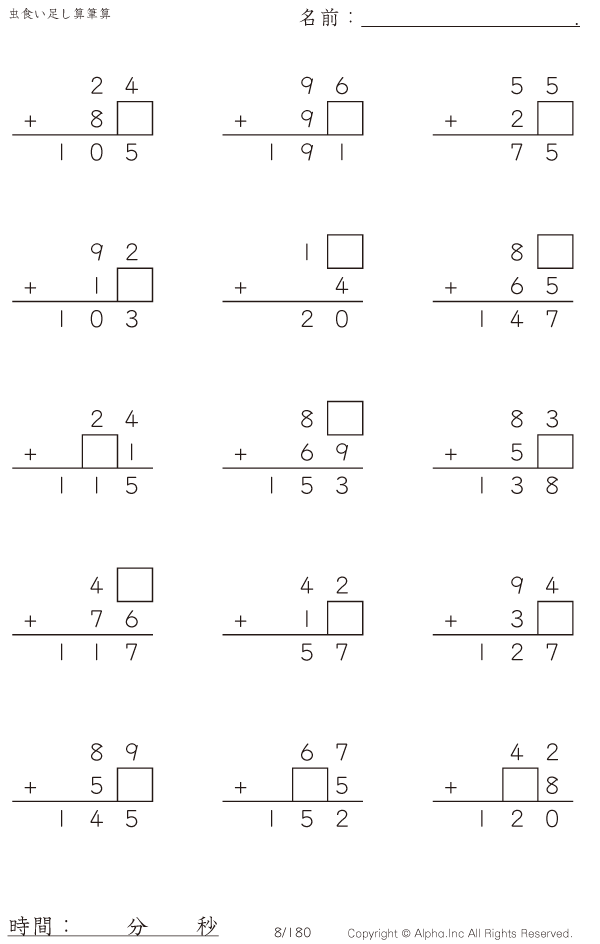 虫食い・2桁+2桁の筆算1 [問題]008/180
