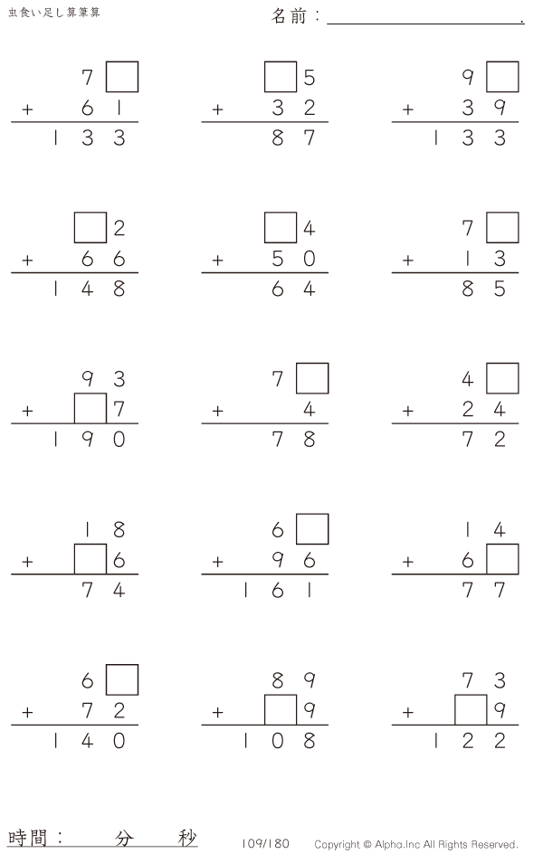 虫食い・2桁+2桁の筆算1 [問題]109/180