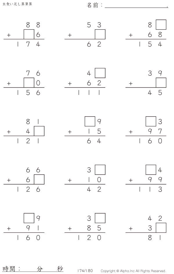虫食い・2桁+2桁の筆算1 [問題]174/180