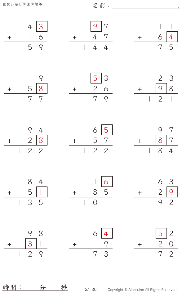 虫食い・2桁+2桁の筆算1 [解答]002/180