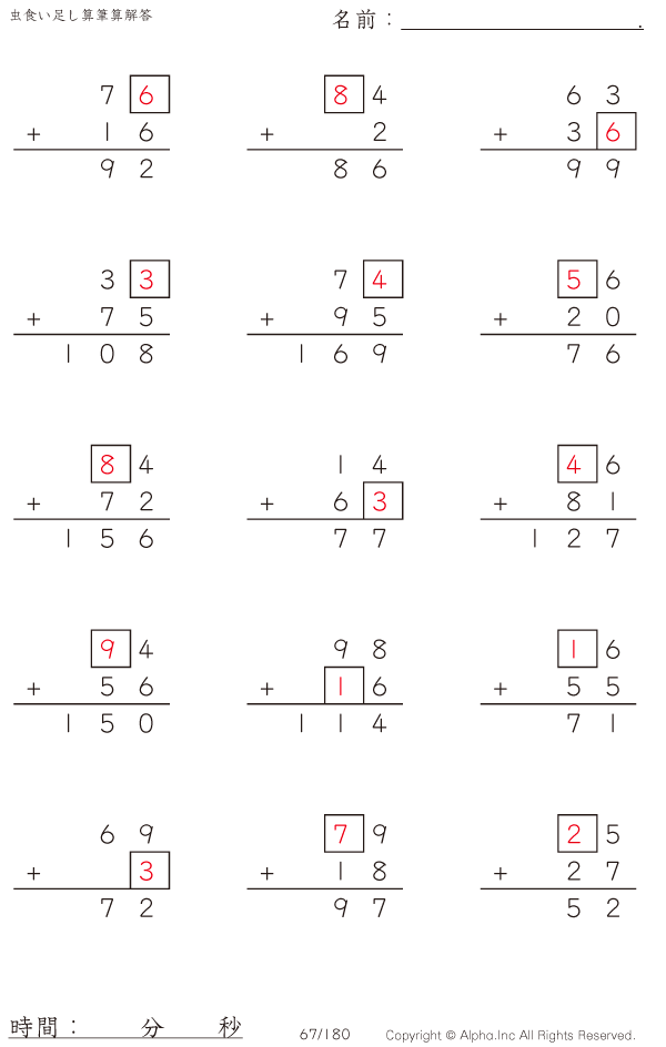 虫食い・2桁+2桁の筆算1 [解答]067/180