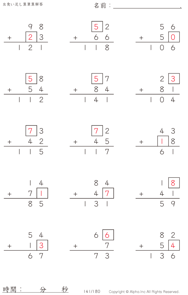 虫食い・2桁+2桁の筆算1 [解答]141/180