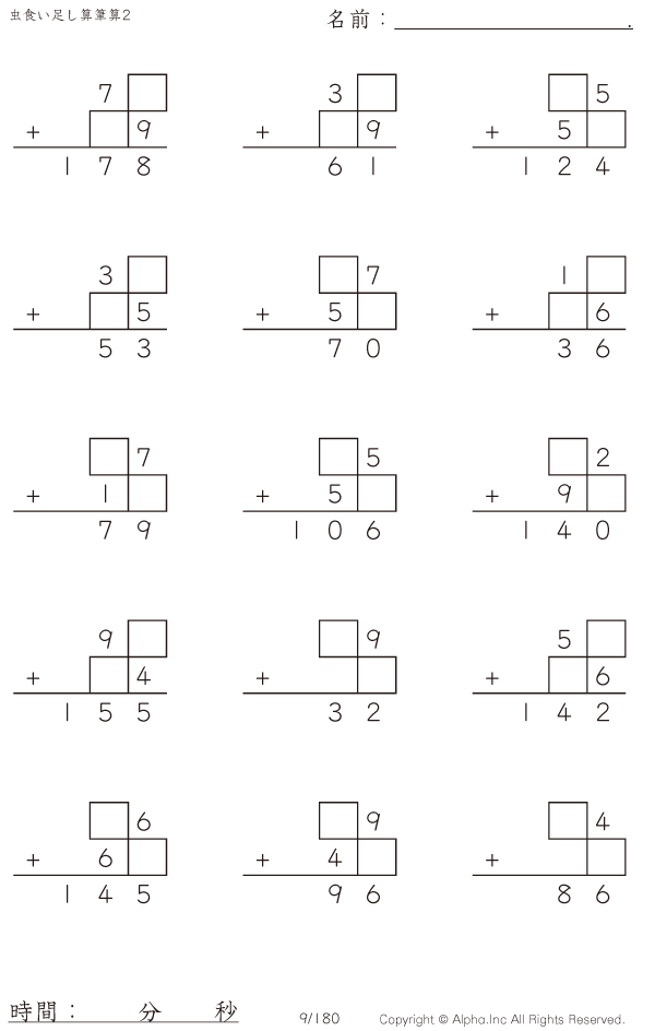 虫食い・2桁+2桁の筆算2 [問題]009/180
