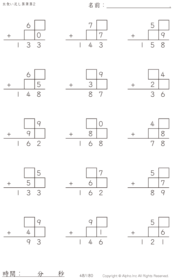 虫食い・2桁+2桁の筆算2 [問題]048/180