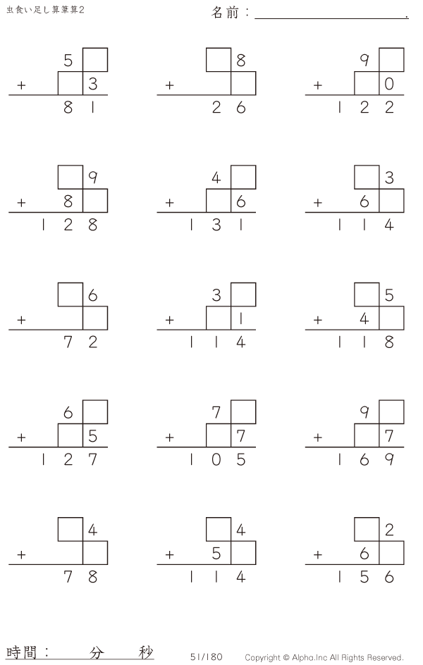 虫食い・2桁+2桁の筆算2 [問題]051/180