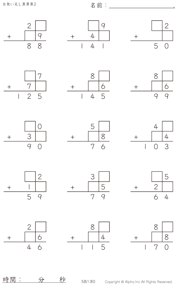 虫食い・2桁+2桁の筆算2 [問題]058/180