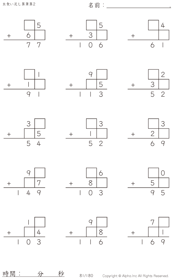 虫食い・2桁+2桁の筆算2 [問題]081/180