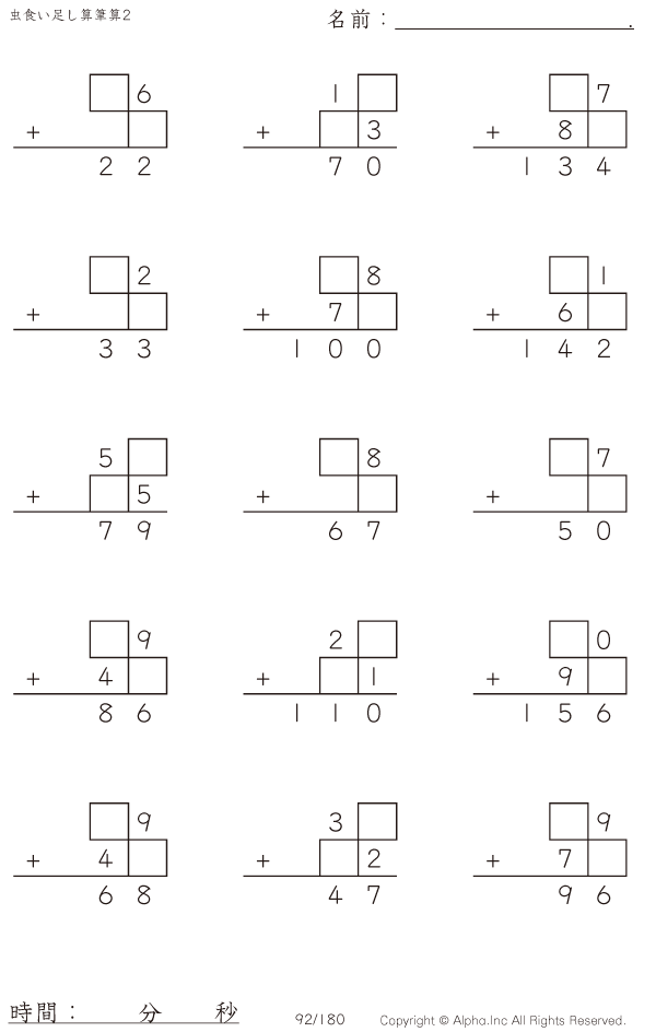 虫食い・2桁+2桁の筆算2 [問題]092/180