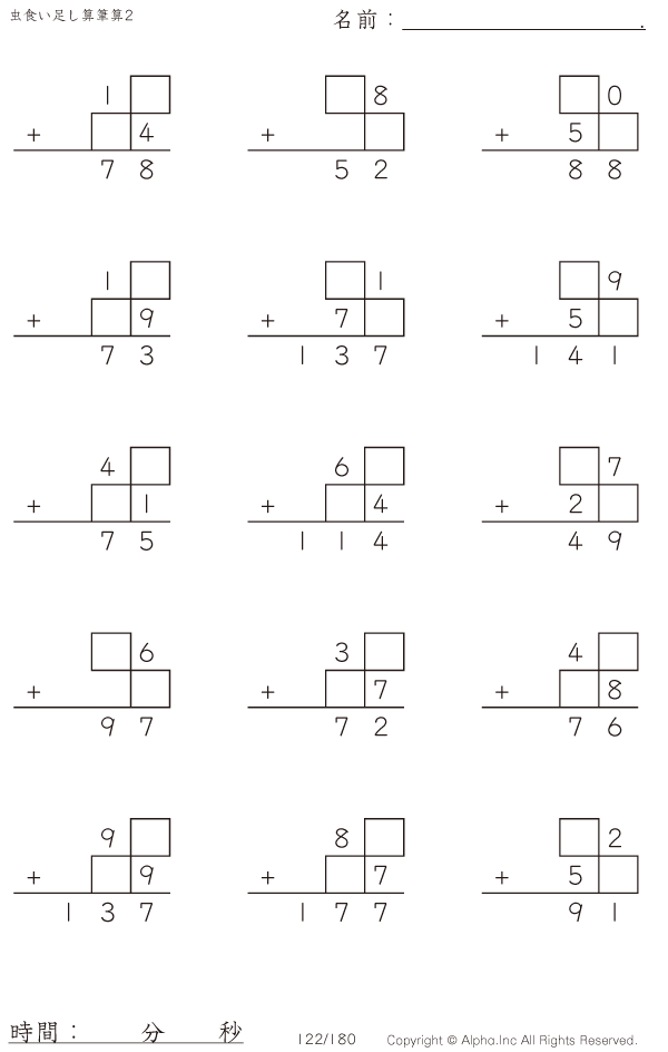虫食い・2桁+2桁の筆算2 [問題]122/180