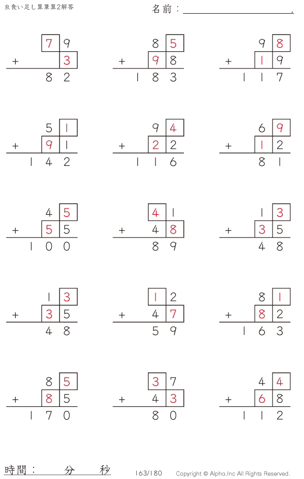 虫食い・2桁+2桁の筆算2 [解答]163/180