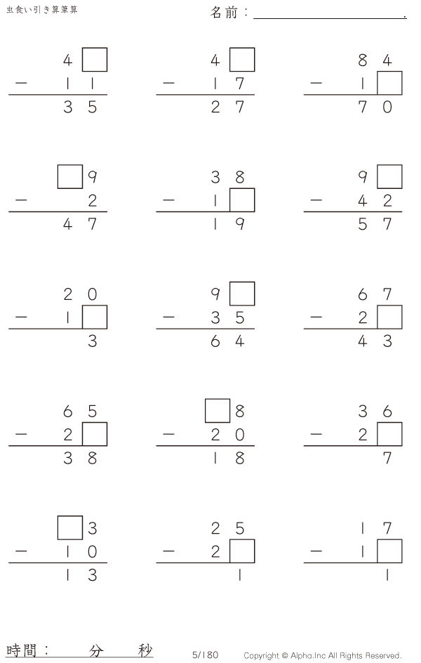 虫食い・2桁-2桁の筆算1 [問題]005/180