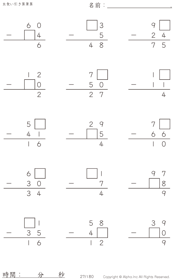 虫食い・2桁-2桁の筆算1 [問題]027/180