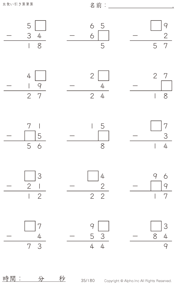 虫食い・2桁-2桁の筆算1 [問題]035/180