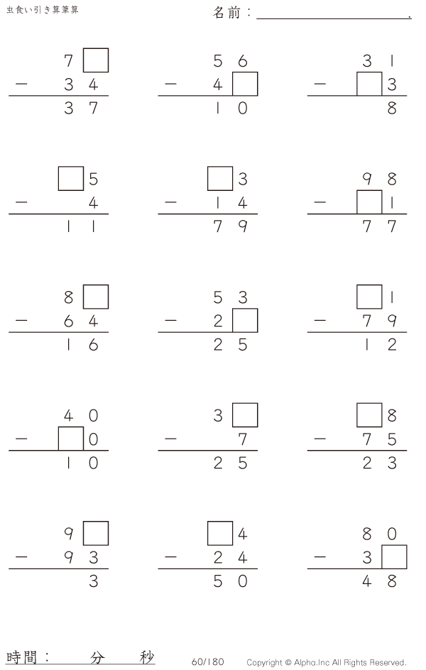虫食い・2桁-2桁の筆算1 [問題]060/180