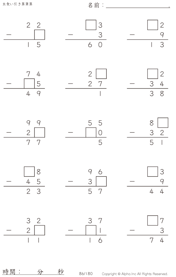 虫食い・2桁-2桁の筆算1 [問題]086/180