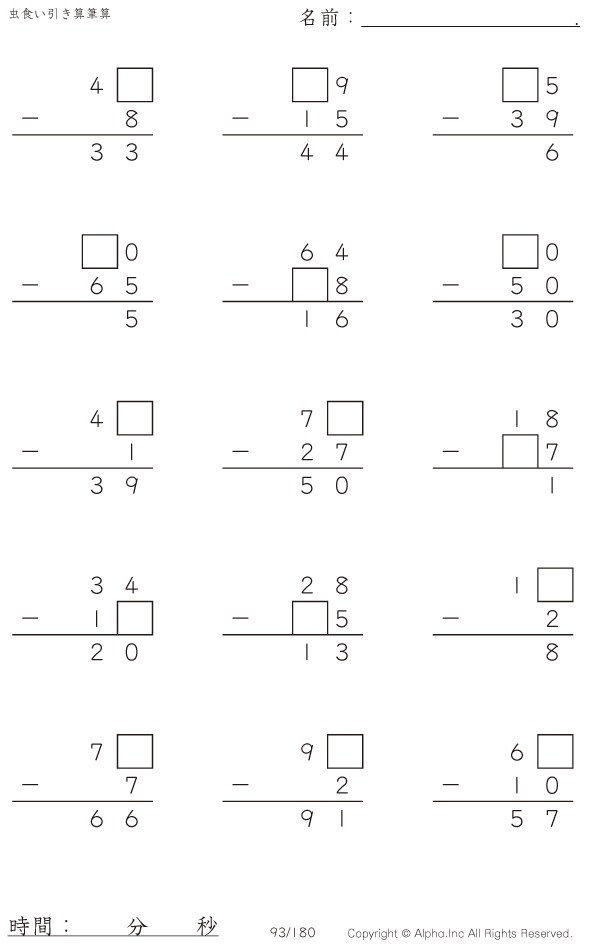 虫食い・2桁-2桁の筆算1 [問題]093/180