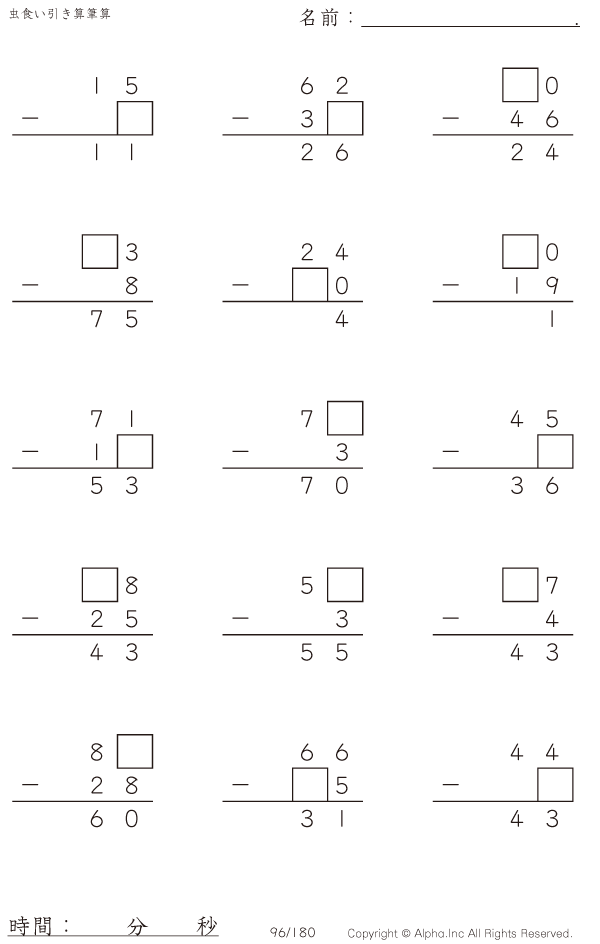 虫食い・2桁-2桁の筆算1 [問題]096/180
